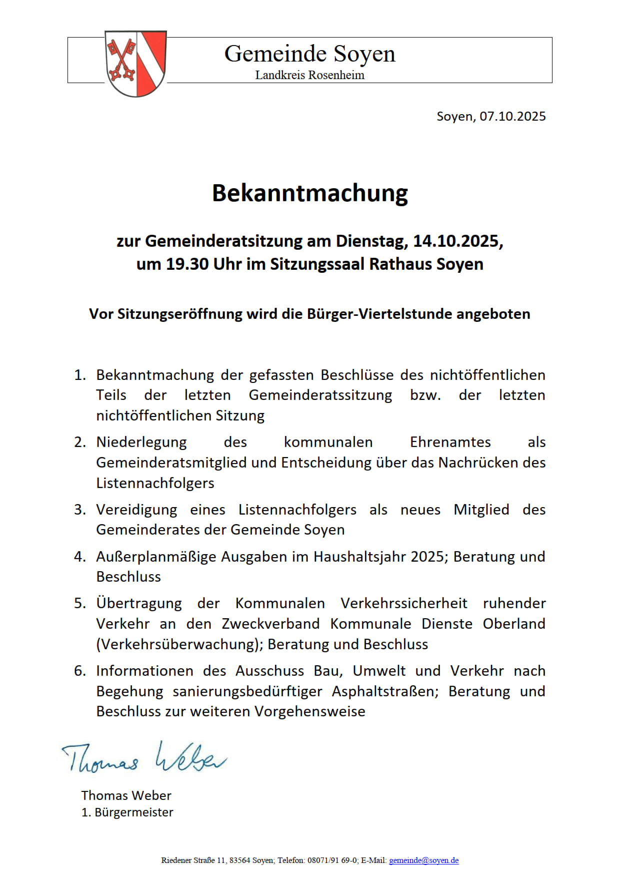 Sitzung Gemeinderat Soyen